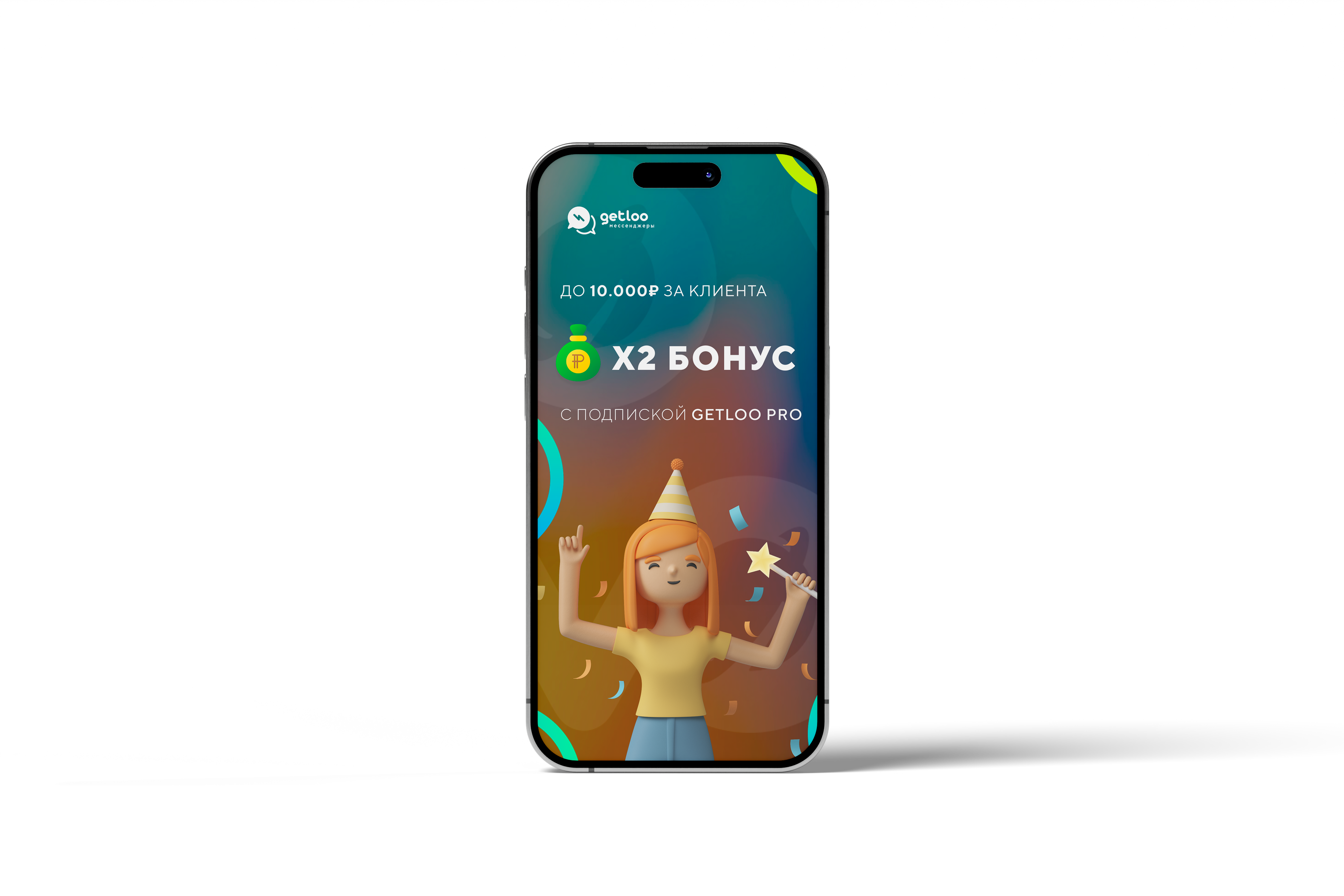 Каждый раз, когда вы приводите нового клиента, вы получаете на месяц подписку Getloo PRO. Подписка умножает ваши бонусы за клиентов, привлеченных на бесплатный тест-драйв во время ее действия.